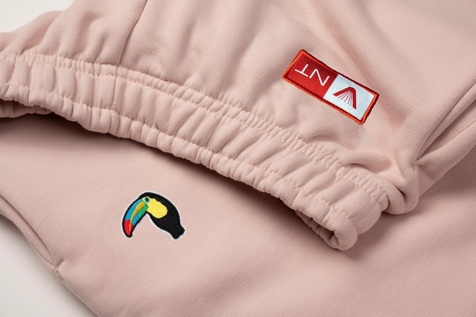Klasyczne różowe spodnie dresowe streetwear z barwnym wzorem tukana to prawdziwy must have szafy kapsułowej. Tukan tęczodzoby jest symbolem różnorodności ekosystemów tropikalnych, które warto chronić. Przedstawiony w formie delikatnego, artystycznego haftu sprawia, że ponadczasowe spodnie zyskują nowy charakter.